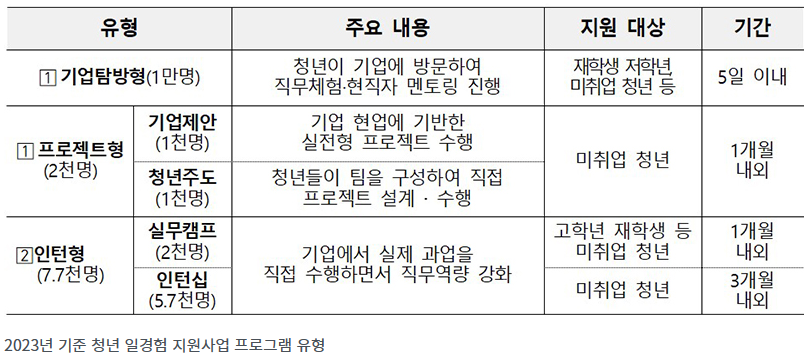 ☞ 미래내일 일경험 사업 https://www.work.go.kr/experi/index.do