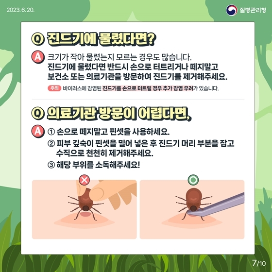 (주의) 바이러스에 감염된 진드기를 손으로 터트릴 경우 추가 감염 우려가 있습니다.