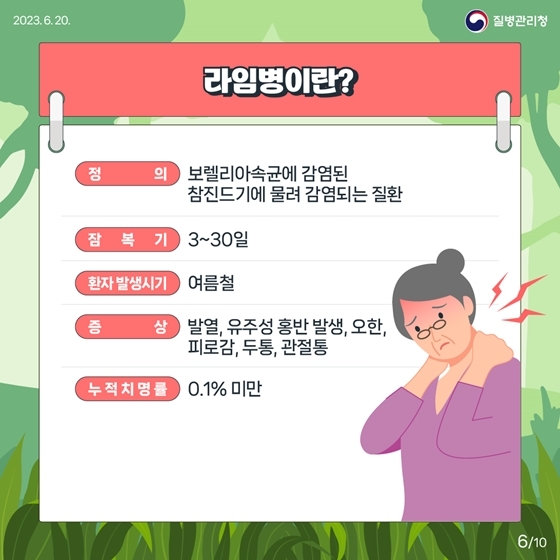 진드기 매개 감염병에 대해 자세히 알아보고, 야외활동 시 진드기에 물리지 않도록 예방수칙을 꼭 지켜주세요!