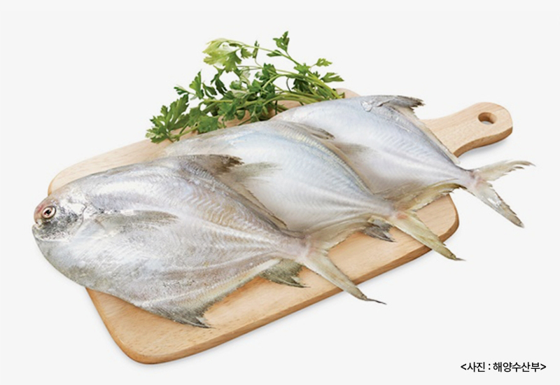 은빛을 띄는 마름모꼴 모양의 병어는 작은 눈과 앙증맞은 입이 특징이다.