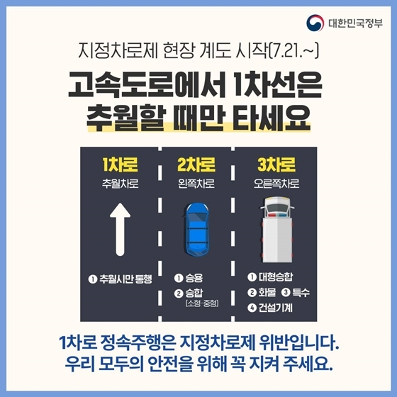 5. 고속도로에서 1차선은 추월할 때만 타세요! 지정차로제 현장계도 시작(7.21.~)