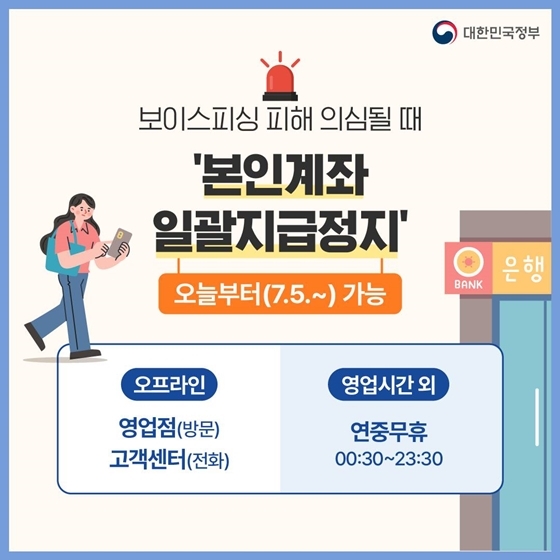6. 보이스피싱 피해 의심될 때 ‘본인계좌 일괄지급정지’ (7.5.~)