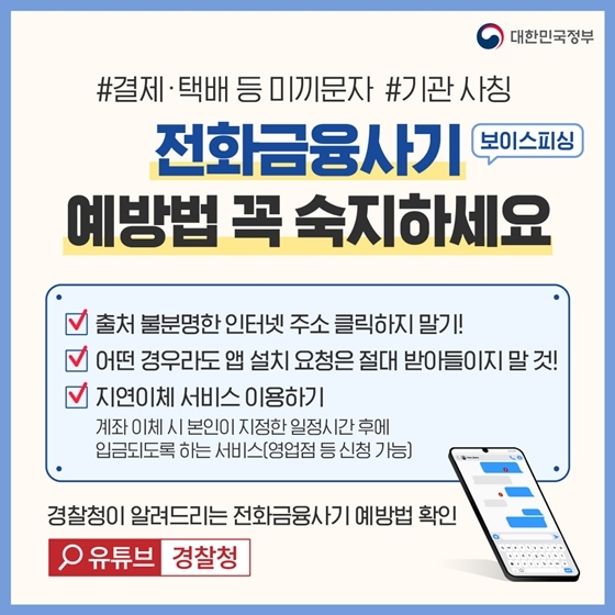 ☞ 경찰청이 알려드리는 전화금융사기 예방법 확인 경찰청 유튜브