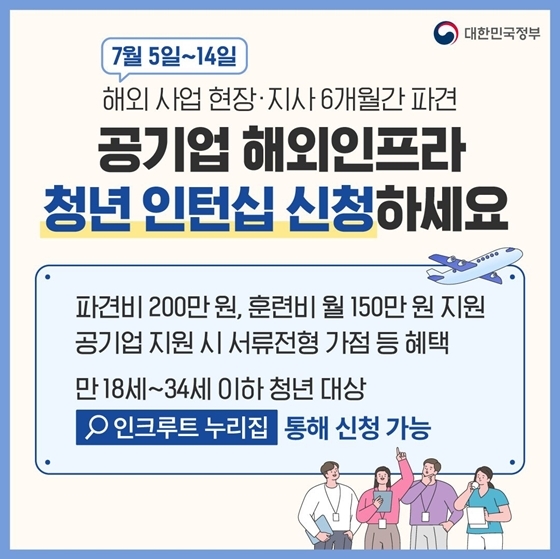 2. 해외사업 현장·지사 6개월간 파견 공기업 해외인프라 청년 인턴십 신청하세요!